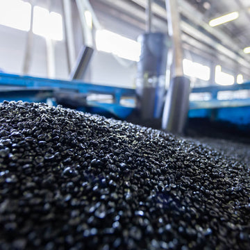 The plastic waste is cleaned, shredded and formed into pellets, then prepared to create fibers for fabric.